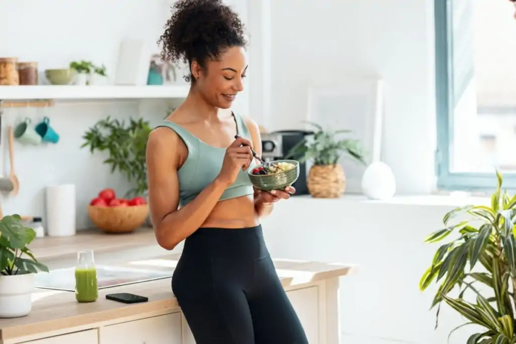 Mulher se alimenta após o treino | Foto: (Reprodução/Internet)